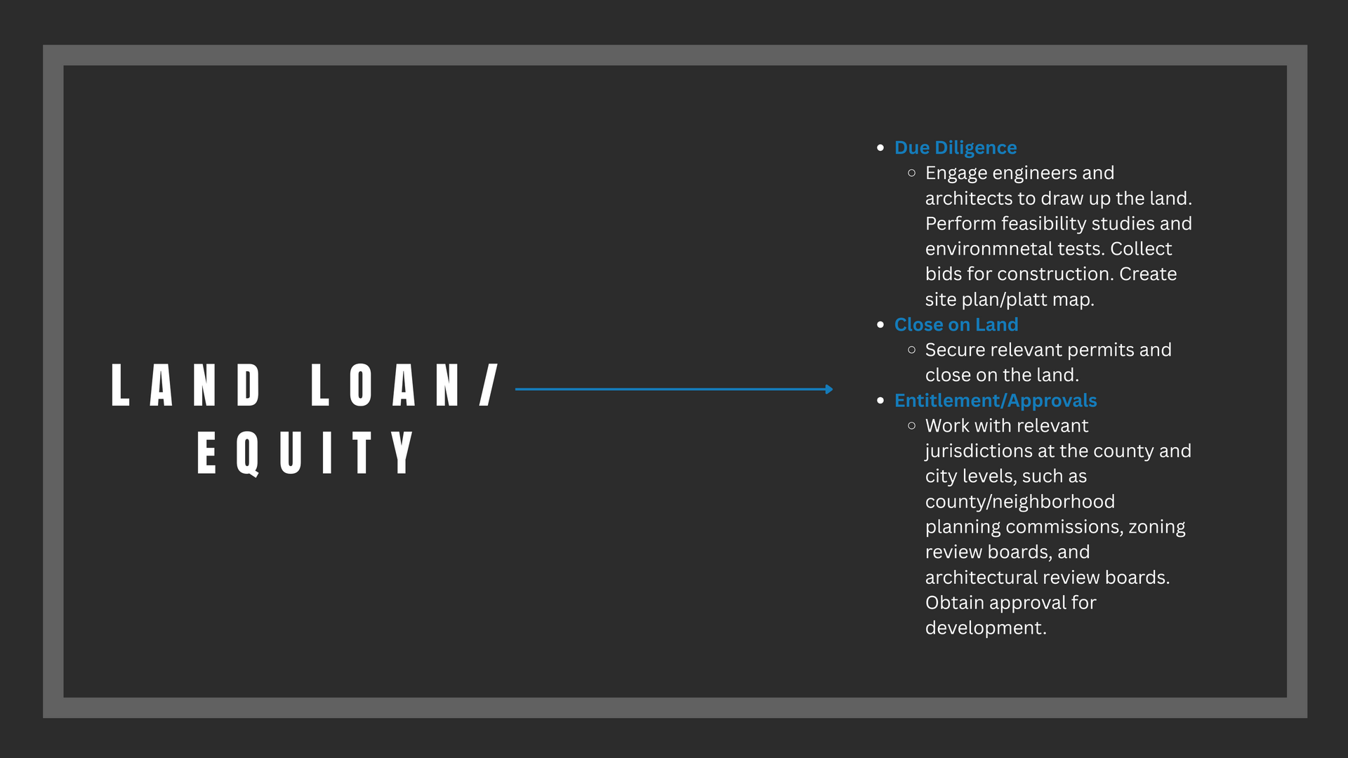 We invest across the capital stack in residential housing because we believe in a dynamic investment strategy that prioritizes safety first and growth second. We pay ultra close attention to mitigating risk through our financing terms / deal structures.